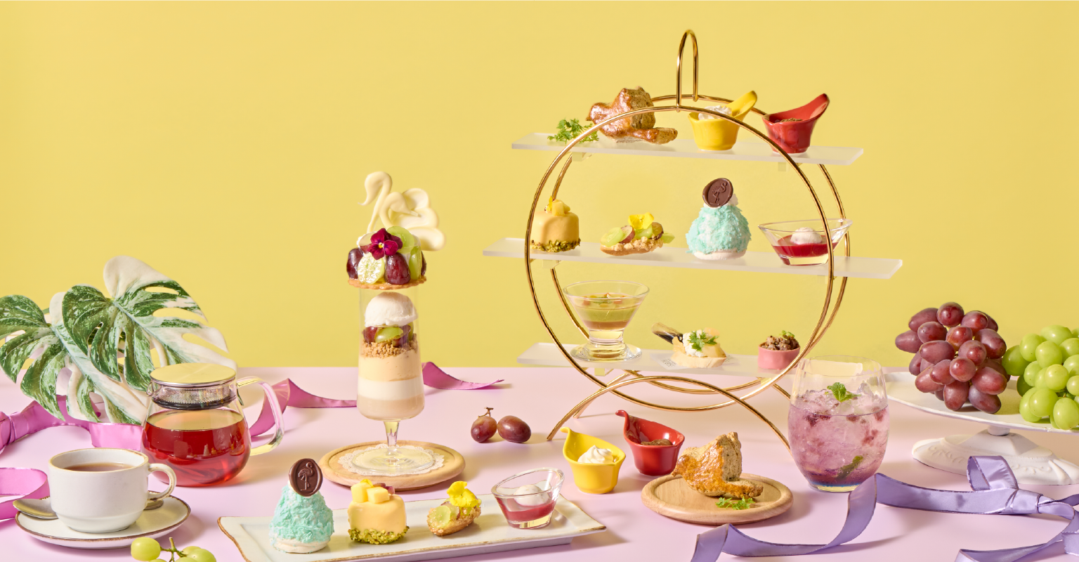 9月30日までは、パフェが主役の「アフタヌーン・パルフェ ~桃と葡萄の贈り物~」シーズン2(葡萄)をお楽しみいただけます。驚きと新しい味の発見に満ちたメインパフェと、ヨーロッパの伝統菓子をアレンジしたスイーツ、まるでスイーツのようなセイボリーをセットでお届けします。
