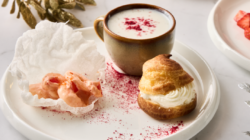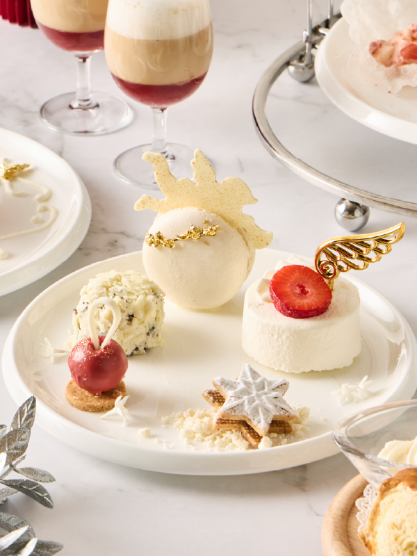 鮮やかな赤色の「エンジェルベリー・ムース」や雪の結晶をまとった「スノークリスマス・クッキーサンド」など、クリスマスムードを一気に高めるスイーツが並びます。フェスティバルシーズンにふさわしい、心ときめくひとときをお届けします。