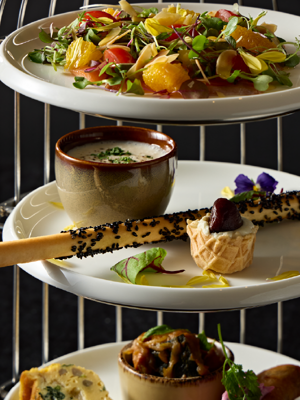 【スタンド2段目】 焼き栗とマスカルポーネ / 本日のスープ / チーズグリッシーニ