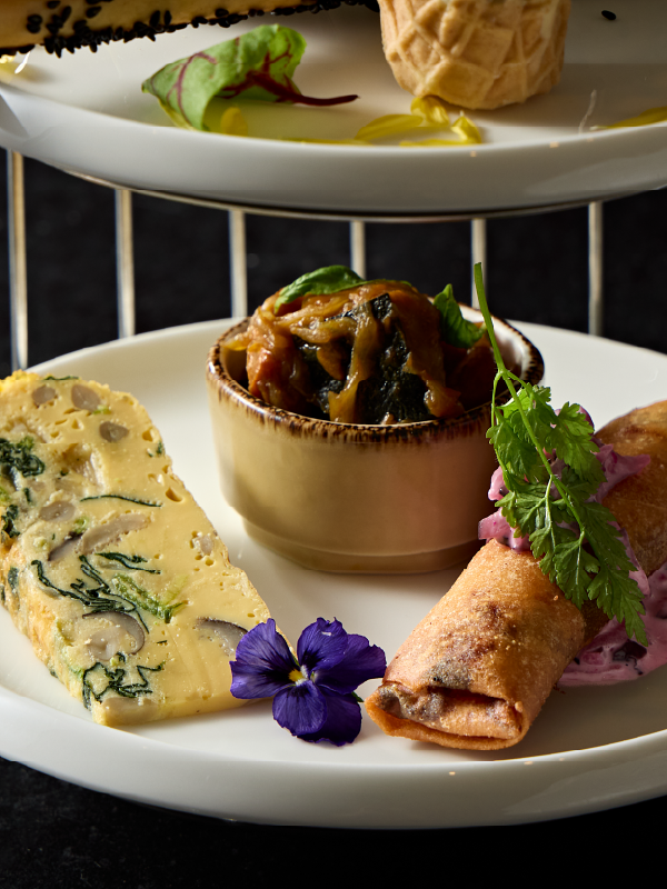 【スタンド3段目】 キノコのフリッタータ / かぼちゃのアグロドルチェ / 海老とアボカドの包み揚げ