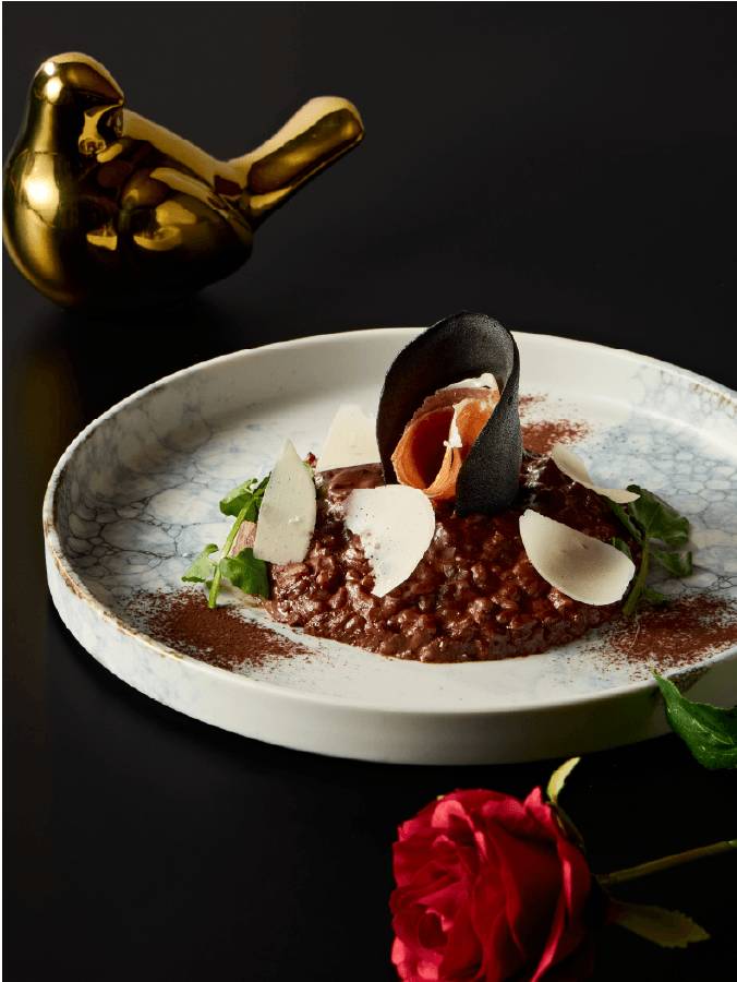 【カカオとハモン・セラーノのバレンタイン・リゾット】