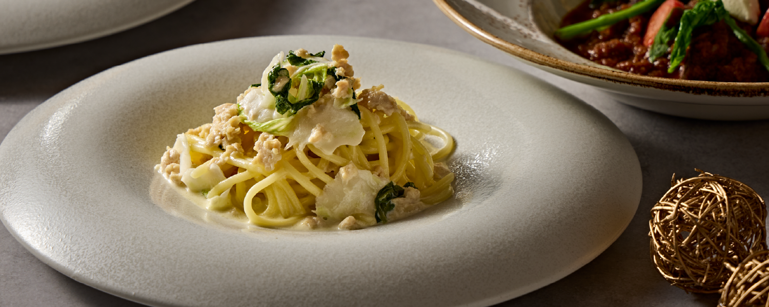 <B>鶏ソボロと白菜のクリームソーススパゲッティ