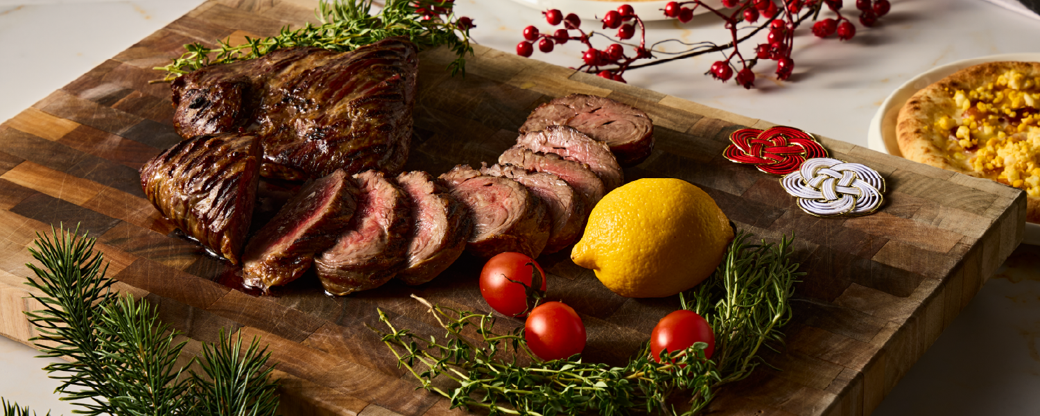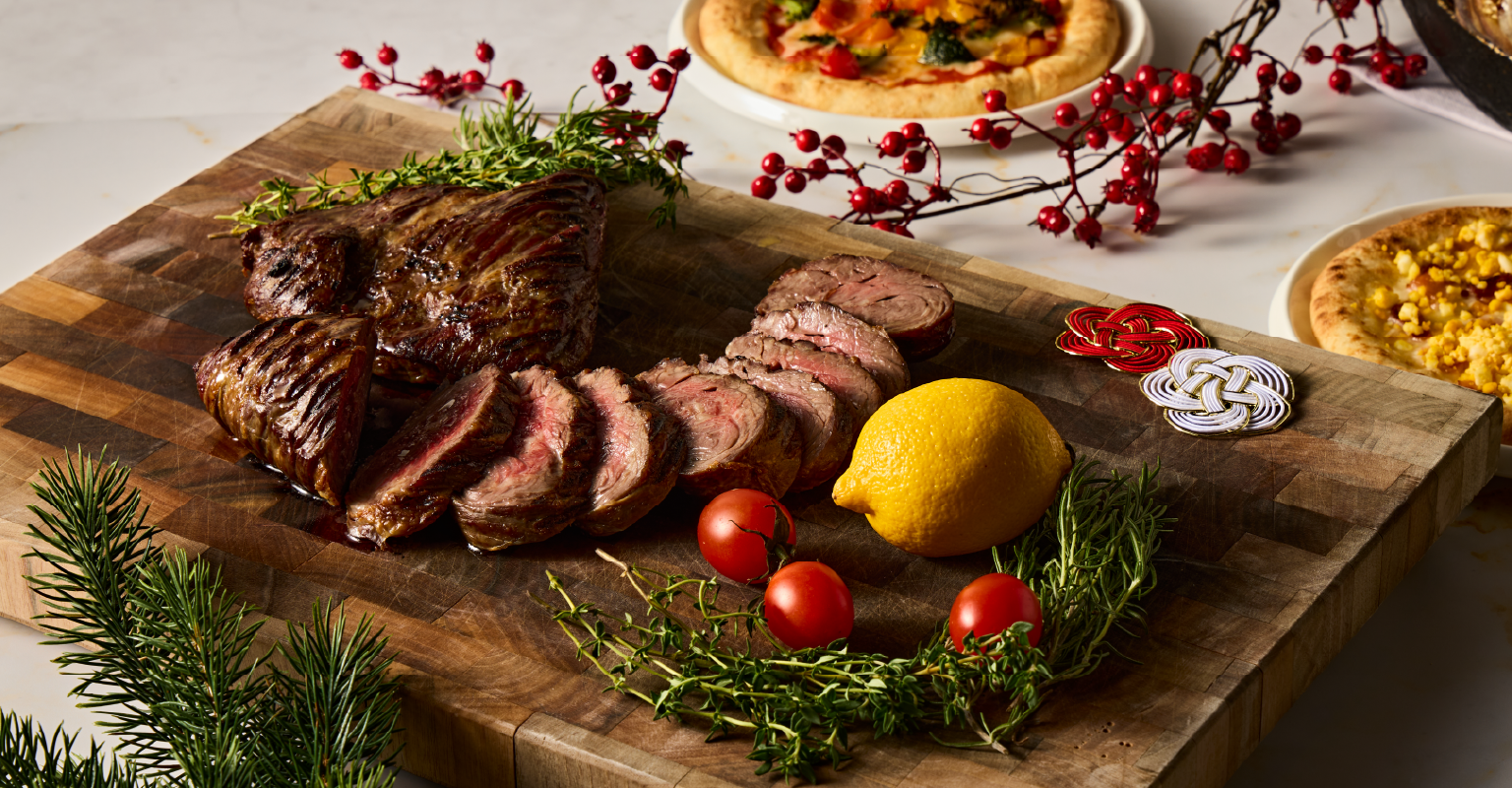 厳選したアンガス牛を豪快にグリル。肉の旨味を閉じ込め、中はジューシーに、外は香ばしく焼き上げました。力強い赤身の味わいを、レモンやハーブとともにお楽しみください。