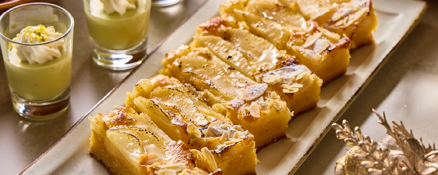 しっとりとしたアーモンドクリームのコクと、瑞々しい洋梨の優しい甘さが溶け合う、上品な味わいのタルト。